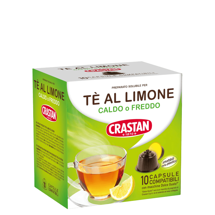 e leggermente pungente, dalle proprietà digestive, antinfiammatorie e antiossidanti. Senza zuccheri e senza glutine, gli aromi sono naturali. Adatto per vegetariani e vegani, sono da zuccherare. Le capsule sono smaltitili nella plastica e la confezione è 100% riciclabile. Il Tè al Limone una bevanda piacevole da gustare sia calda che fredda.